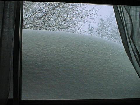 As you've probably heard, we've got some significant snow out here (finally). In our area, we think we got nearly 3 feet! It's kinda tough to tell because of all the drifting, like this drift on the roof outside the (home) office window here.